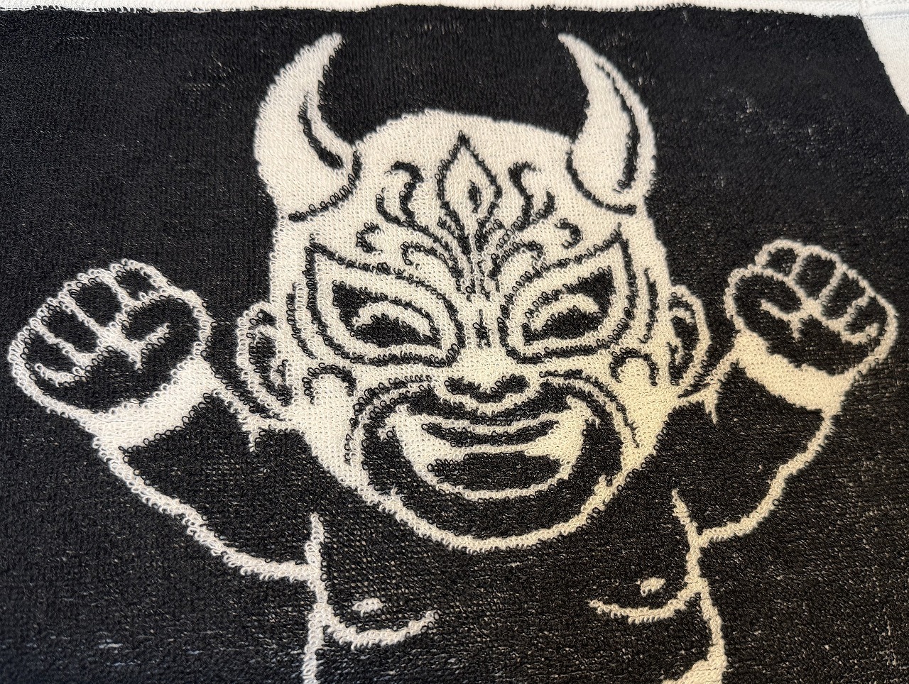 黒と白、2色の糸でパイル(輪っか)状に織り上げてありますので、手触りがソフトで吸水性もバツグン!普段使いに便利な一枚です。